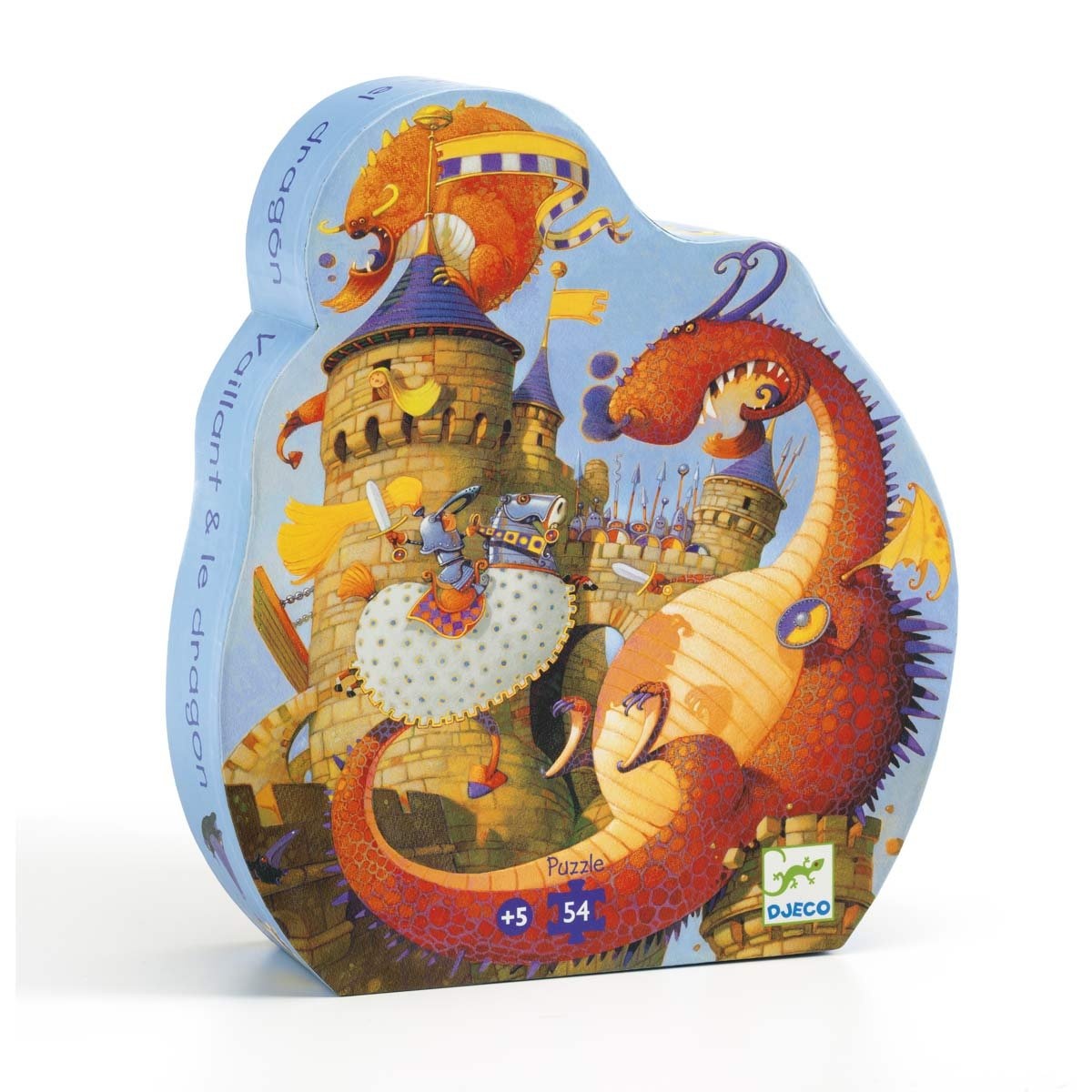 De ridder Vaillant vecht tegen de draken om de prinses in het kasteel te redden. Een prachtige 54-delige puzzel in een elegante doos in de vorm van een kasteel.
