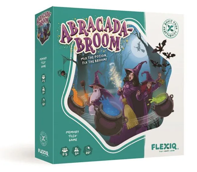 Leuk, magisch en explosief. Abracada-Broom is een geheugenspel vol wendingen voor het hele gezin. Laat je bezem weer verschijnen door de juiste toverdranken te bereiden terwijl de ketels en lepels om je heen vliegen. LET OP: als er te veel ingrediënten zijn, ontploft je ketel!