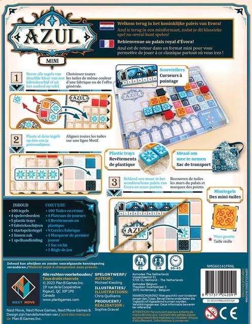 In het spel Azul ga je de muur van het Koninklijk Paleis van Evora betegelen met prachtige motieven. Kies tegels van dezelfde kleur uit een fabriek of uit het algemene aanbod. Deze tegels lijn je op een van je patronen.