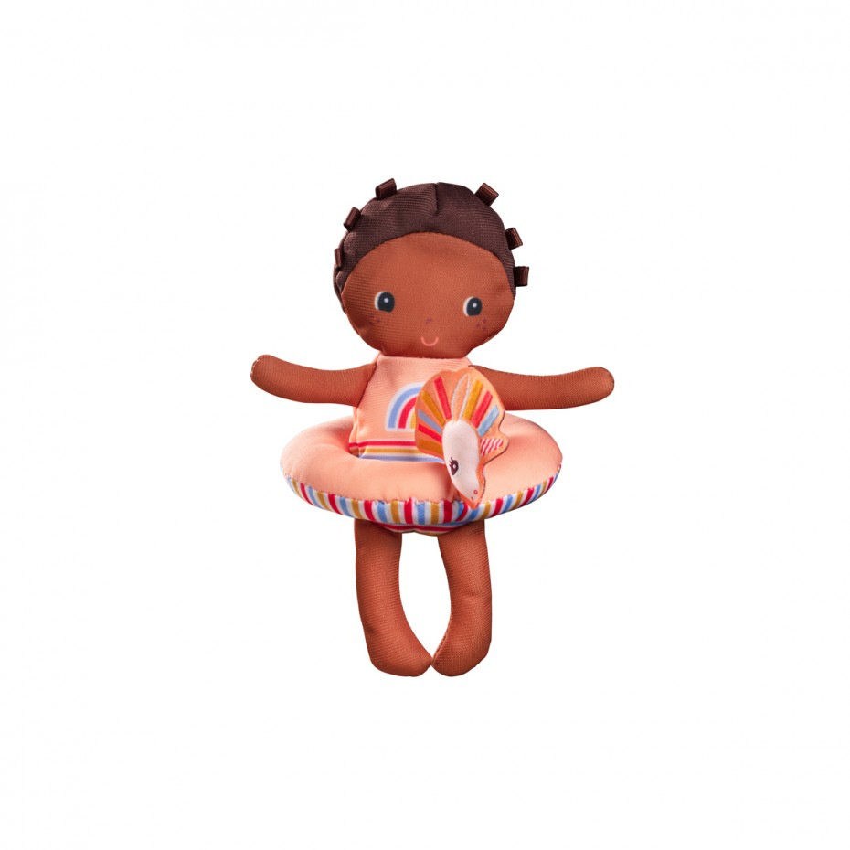 Wie droomt er niet van om samen met een eenhoorn in bad te gaan? Deze kleine pop en haar eenhoorn zorgen voor magische momenten in het bad om samen ongelofelijke avonturen te beleven! Dit popje van polyester is 18 cm groot en maak het baduurtje nog leuker. Rondom haar middel heeft ze een meerkleurige zwemband voorzien van een eenhoornhoofd. De pop kan, na badtijd, aan het daartoe voorziene lusje opgehangen worden en droogt snel weer op.