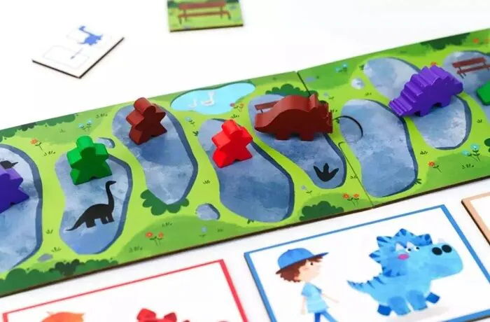 • Spelmechanisme: Spelers bewegen hun dinosaurus over het bord en moeten obstakels overwinnen, waaronder de parkwachter Billy.