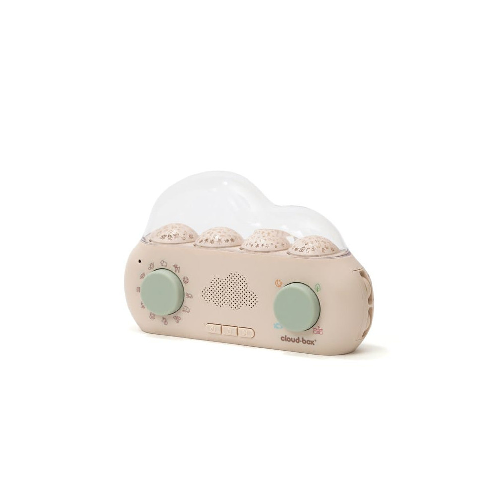 CloudBox™ heeft: – 36 originele verhalen, – 8 melodieën -8 witte geluiden met 4 gesynchroniseerde lichtprojecties. De aangepaste lichtprojecties veranderen bij elk verhaal om een visueel spektakel te creëren dat het verhaal tot leven brengt! Cloud.box™ vertelt 36 leuke verhalen rond 9 personages met heel verschillende persoonlijkheden. Met betoverende werelden om te verkennen – oceaan, bos, ruimte en de stad – helpt CloudBox™ baby’s te kalmeren en dompelt het kinderen onder in magische werelden die helpen hun verbeelding te ontwikkelen. Een opnamefunctie stimuleert de creativiteit door ouders of kinderen aan te moedigen hun eigen verhalen te maken. cloud.box™ biedt een tweetalige ervaring omdat verhalen in 2 talen kunnen worden geselecteerd (Frans / Engels – Engels / Spaans – Duits / Engels – Italiaans / Engels – Frans/Nederlands). De cloud.box™ is interactief zonder dat er een scherm nodig is en zorgt ervoor dat kinderen echt van verhalen houden terwijl de “schermtijd” wordt beperkt. Sluit een hoofdtelefoon aan de linkerkant van de cloud.box™ voor een volledige audio-ervaring (hoofdtelefoon niet inbegrepen).