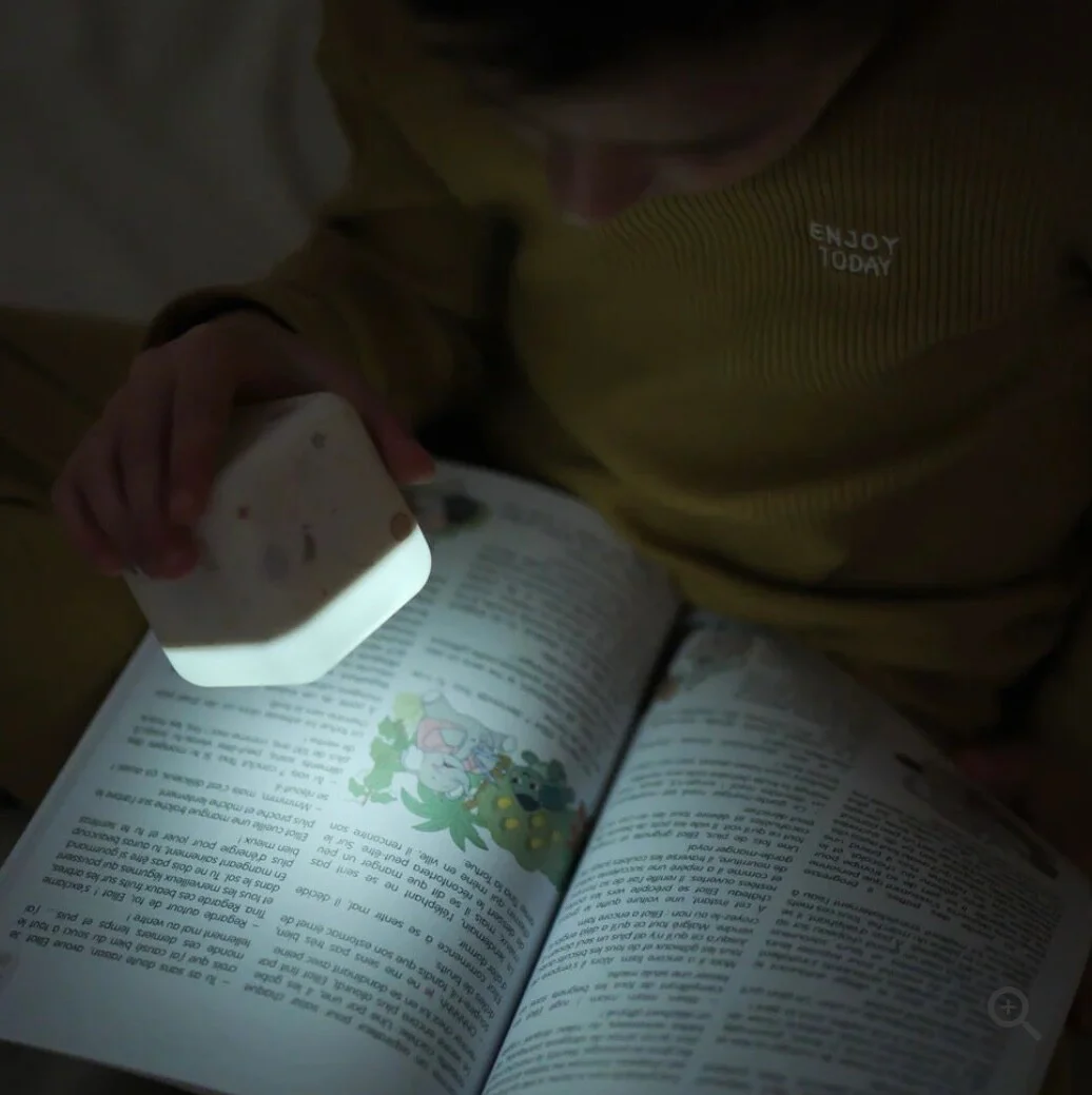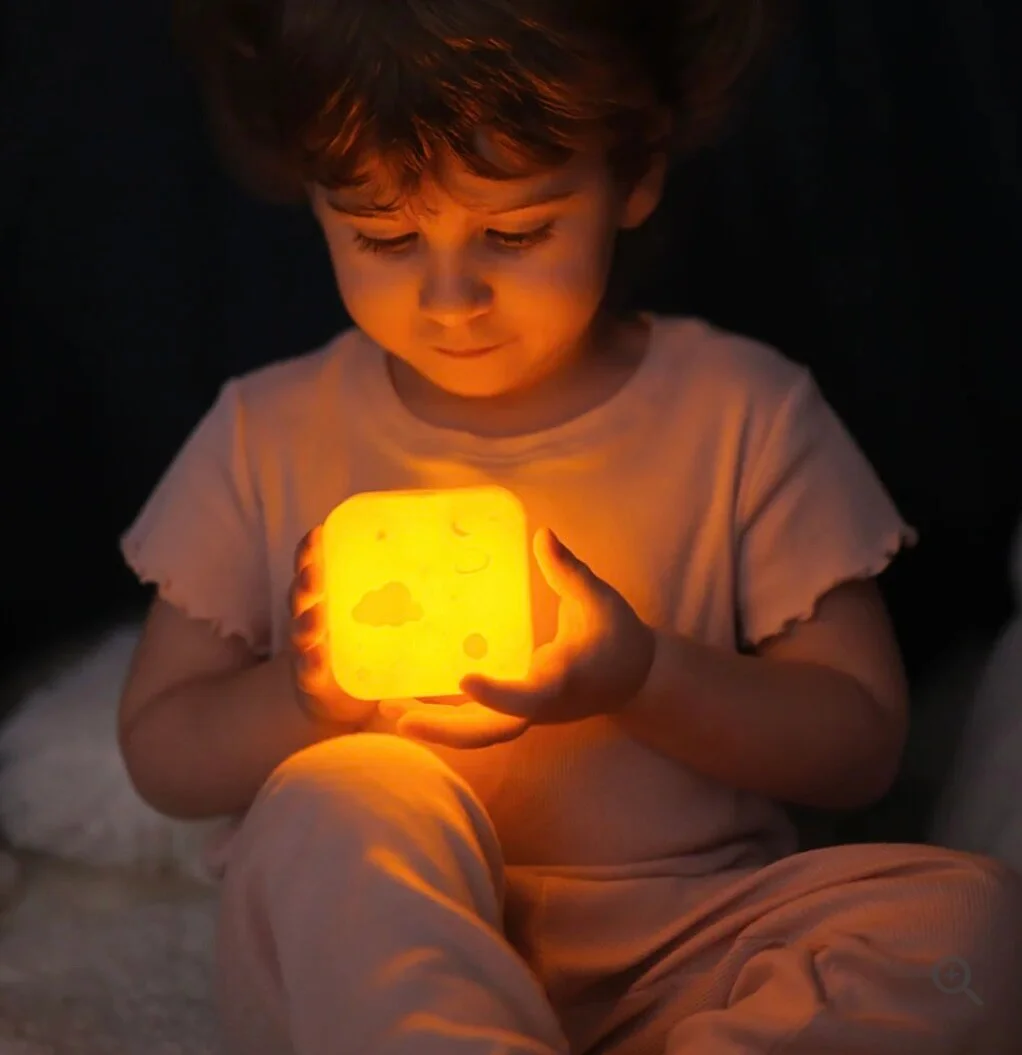 De Cube B zorgt voor rust en comfort tijdens het slapengaan. Dit nachtlampje heeft een slim tweedelig ontwerp dat samen een verlichte kubus vormt en kan zowel in het stopcontact worden gebruikt als los worden meegenomen. Met de tap- sensor wissel je eenvoudig tussen een zachte witte gloed en een rustgevend oranje licht en stel je de helderheid naar wens in. Dankzij het compacte formaat kunnen ook oudere kinderen het lampje zelf meenemen om hun weg in het donker te vinden. Na 30 minuten schakelt het lampje automtisch uit, zodat de nacht ongestoord verloopt.