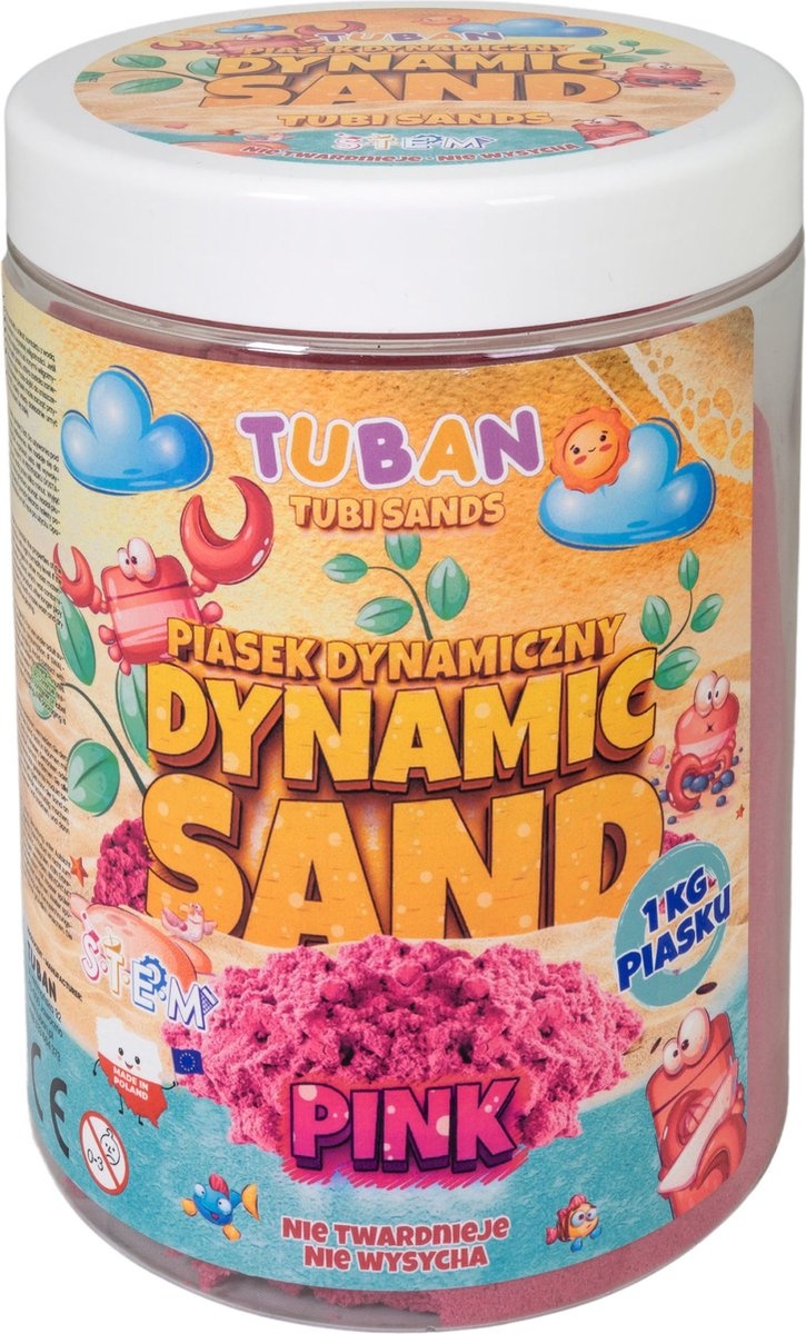 Dynamische zand vloeit, hoewel het niet verkruimelt, voelt het aangenaam aan, het kan in de meest verfijnde vormen worden gevormd. Spelen met het zand is een geweldige oefening voor de fijne motoriek.