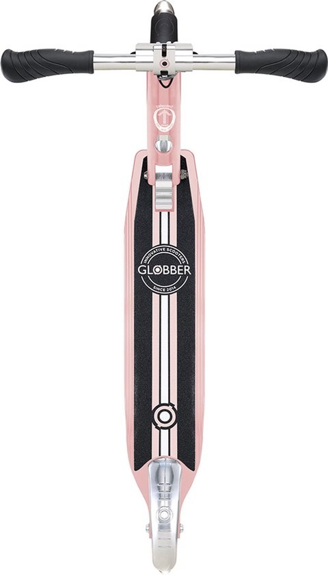 De dubbele clamp boven de voorvork zorgt voor een uitermate sterke montage. Het risico van speling is hier minimaal. Deze kanjer is gemaakt van aluminium en bijgevolg vederlicht. Het deck, dat is voorzien van een anti-slip griptape met Globber logo, heeft een draagkracht tot 100 kg.