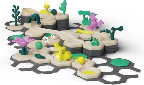 Met de GraviTrax Junior starterset My Jungle dompelen kinderen zich onder in de wereld van de jungle om een mooie knikkerbaan te maken.