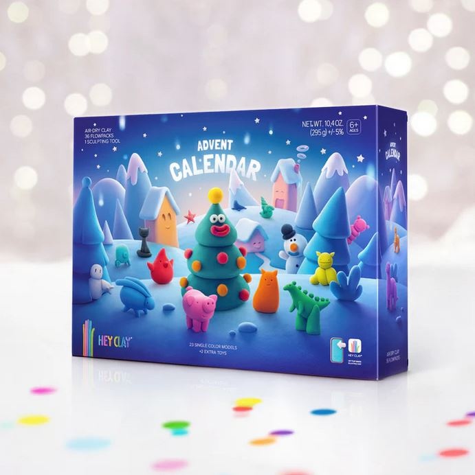 Tel af naar Kerst met de nieuwe HeyClay advent kalender! Van 1 december tot 25 december krijg je elke dag een nieuw creatief cadeautje: 25 verschillende figuren om te boetseren. Perfect om in de kerststemming te komen.