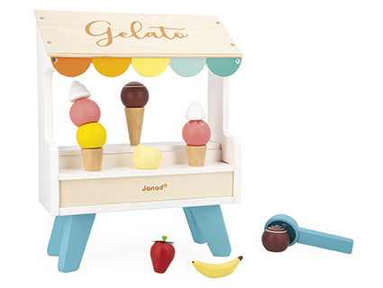 Vanille, aardbei of chocolade? Laat je verleiden door een lekker ijsje… Er is voor ieder wat wils! Dit is een leuk kraam waarmee uw kind heel veel lekker ijs kan maken. Het bevat 3 hoorntjes, 6 bollen die verschillende smaken voorstellen, 2 vruchten en slagroom als decoratie, allemaal magnetisch, en een magnetische lepel om de bollen ijs op te scheppen. Uw kind kan prachtige composities maken zodat u alle smaken kunt proeven en uitproberen. Ontwikkelt de verbeelding en interactiviteit met anderen, en stimuleert de creativiteit.