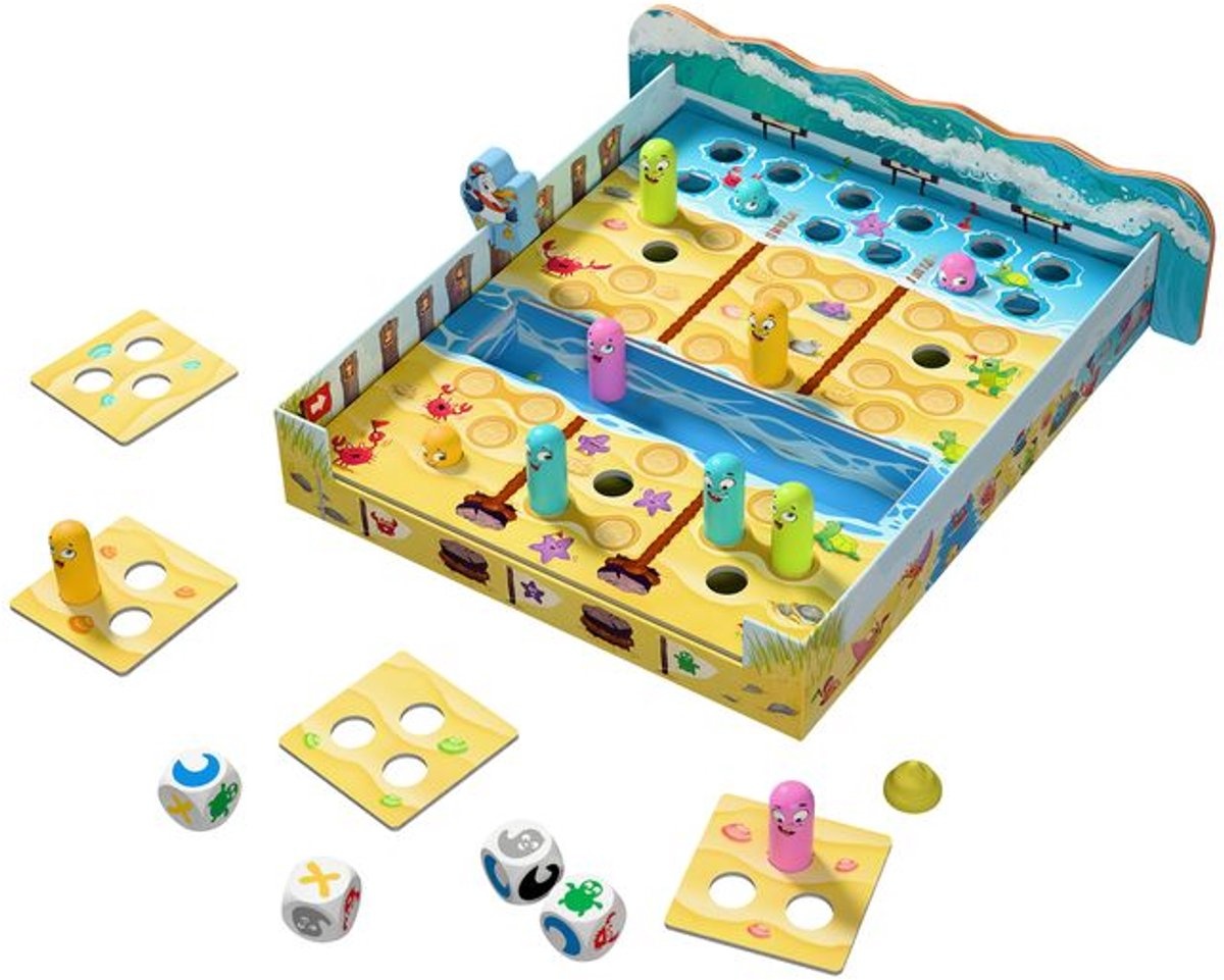 Geraak jij met jouw kleur 3 keer aan de overkant zonder dat de golf jou van het spelbord duwt? Een portie geluk met de dobbelstenen kan hier zeer goed van pas komen. Door met de vier dobbelstenen te gooien, geraak je aan de overkant of zorg je er net voor dat de golf naar voor komt.