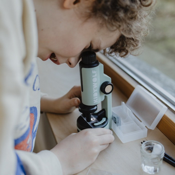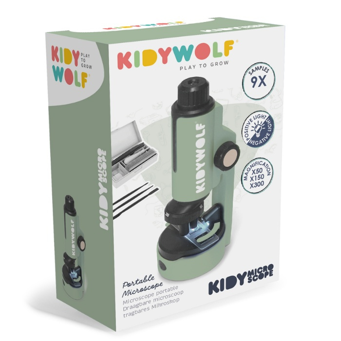 Duik in de fascinerende wereld van het kleinste leven met de groene Kidywolf KIDYMICROSCOPE – een compacte, draagbare en educatieve microscoop speciaal ontworpen voor jonge onderzoekers. Dankzij drie vergrotingsniveaus (50x, 150x en 300x) kunnen kinderen eindeloos experimenteren en ontdekken, van de nerven in een blaadje tot het fijne detail van een veertje.