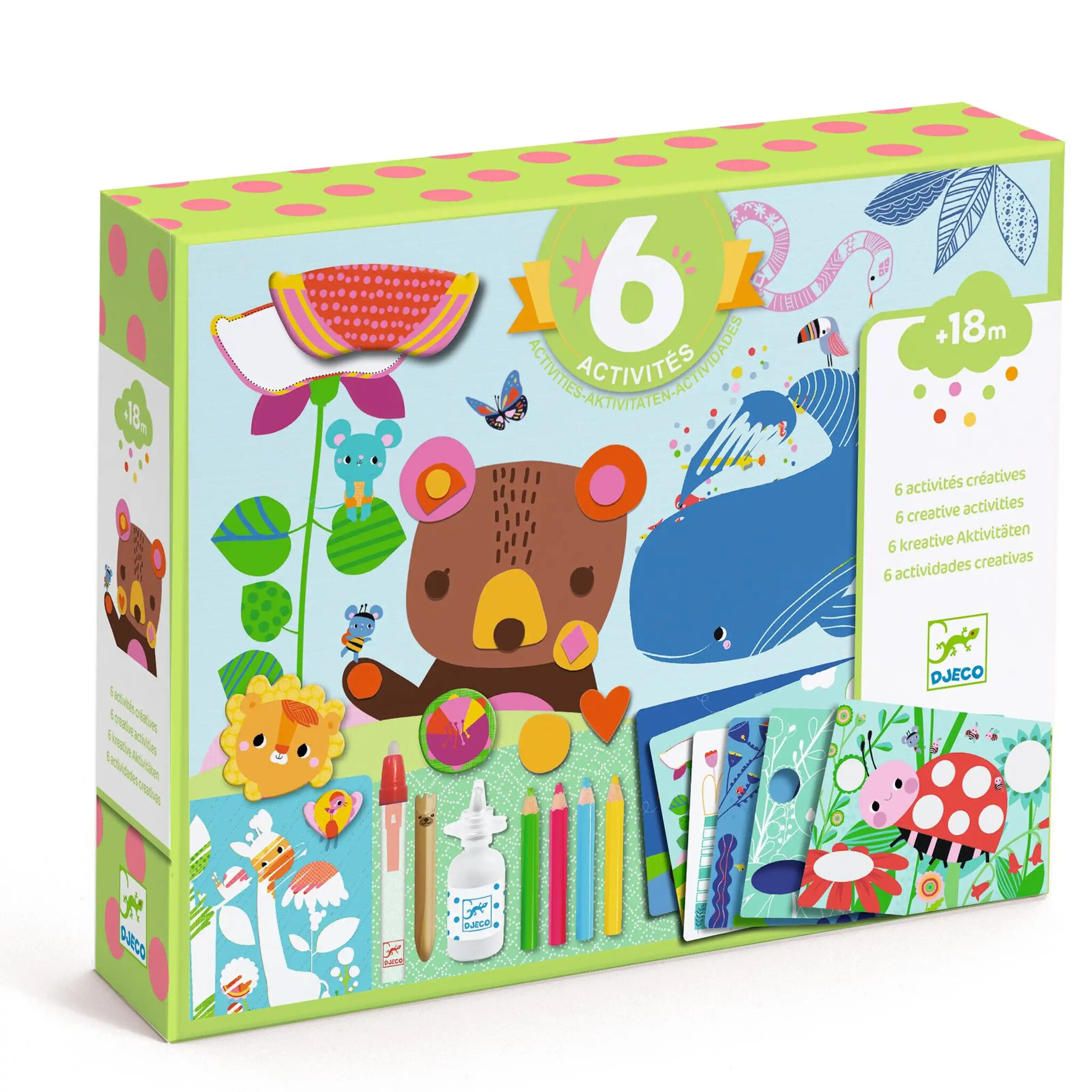 Dit is een uitgebreide doos met 6 creatieve activiteiten en andere bezigheden voor kinderen vanaf 18 maanden. Plakken, kleuren, krassen... Voor ieder wat wils! Urenlange manuele activiteiten om verschillende creatieve technieken te ontdekken. Alle accessoires zijn aanwezig, zodat het kind elke activiteit kan uitvoeren volgens zijn/haar eigen wensen en nieuwsgierigheid. Het boekje waarin elke activiteit stap voor stap wordt beschreven, helpt het kind bij zijn/haar creatieve bezigheden.
