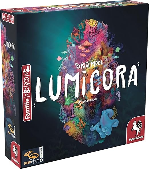 In de ozeanen rond de Äquator straalt een prachtige levensstijl uit in heldere kleuren. Korallenriffe zijn onderwaterecosysteem en vele soorten berg. In de loop van de wereldwijde verwarming gaan de banden in de laatste jaren echter massaal terug en is het aan ons om ze te beschermen om ze in het leven te behouden In Lumicora verzamelt de spelende koraalplaten, zogenaamde luminos, in verschillende kleuren en bouw een nieuwe rif op, die zich in alle richtingen uitstrekt. Je moet je Luminos Clever overeinander bouwen en zo een levensruimte voor de zeedieren die in de rif leven, creëren en tegelijkertijd ervoor zorgen dat ze altijd over voldoende Kalkstein als basis voor de rif beschikken. Een spel gaat over een paar ronden en aan het einde van elke ronde hebben de speelmogelijkheden voor een van vier koraallenarten te punken. Lumicora is een fascinerend, driedimensionaal levensspel dat het gaat om slimme planning en goede timing. Alternatieve achtergronden met nieuwe uitdagingen zorgen voor een hoge speelwaarde.