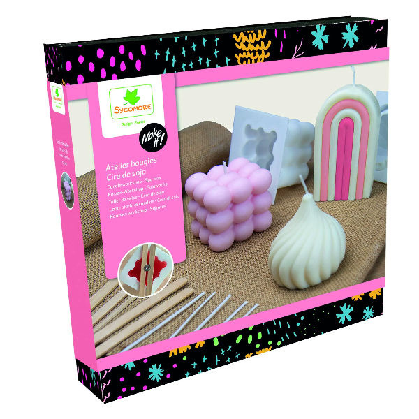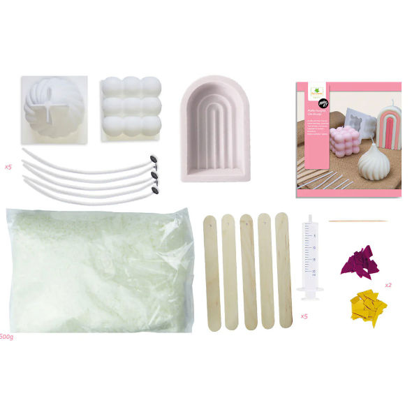 In deze mooie doos vind je alles wat je nodig hebt om 5 originele en trendy kaarsen te maken.