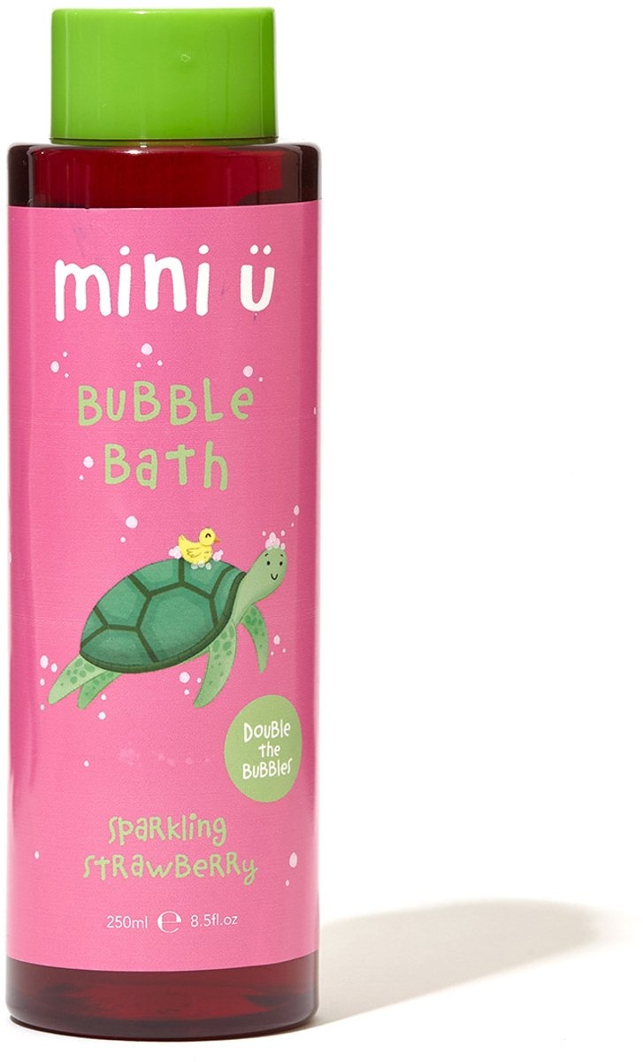 Badschuim Sparkling Strawberry Bubble Bath van Mini Ü. De vrolijkste bubbels in bad! Met zijn zachte schuimformule verandert hij gewoon kraanwater in een bad vol vrolijke roze bubbels. Een feestje voor kinderen en een heerlijk ontspannen moment voor de huid.