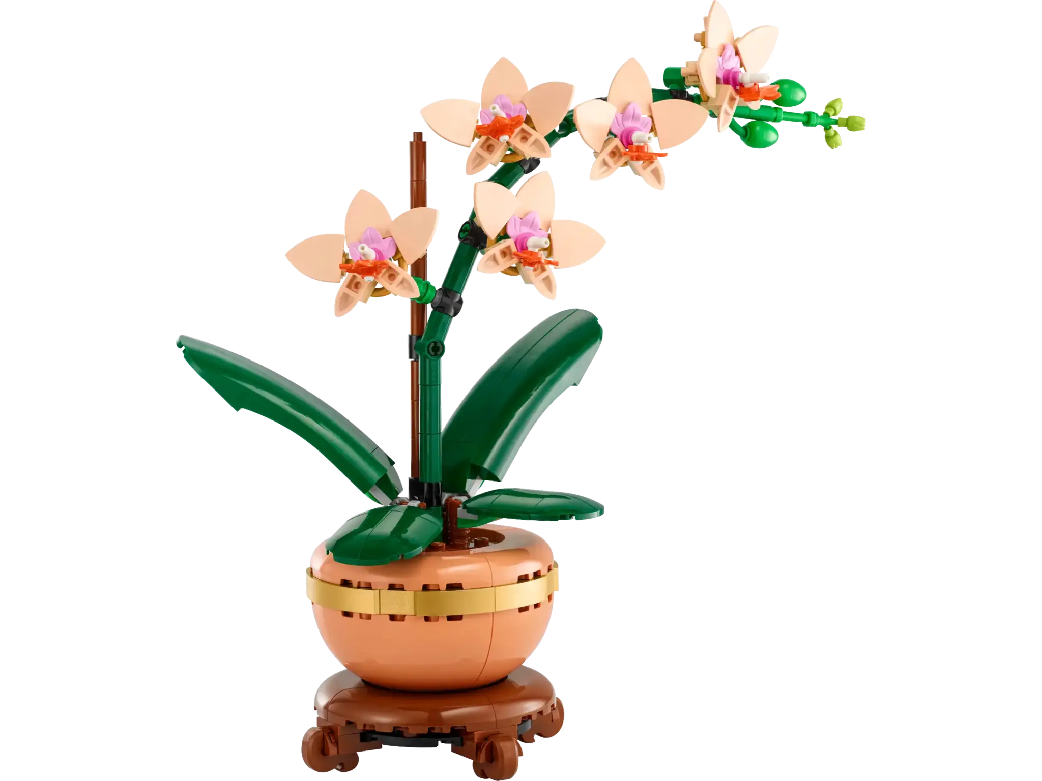 Deze levensechte replica bevat 5 orchideeën in bloei en een paar in de knop, plus bladeren voor een nog realistischer effect. De set wordt ook geleverd met een bloempot in een lichte terracottakleur die op een prachtige sokkel met houteffect staat, waardoor het voor beginnende bloemisten gemakkelijk is om de LEGO plant neer te zetten en een stukje natuur in huis te halen.