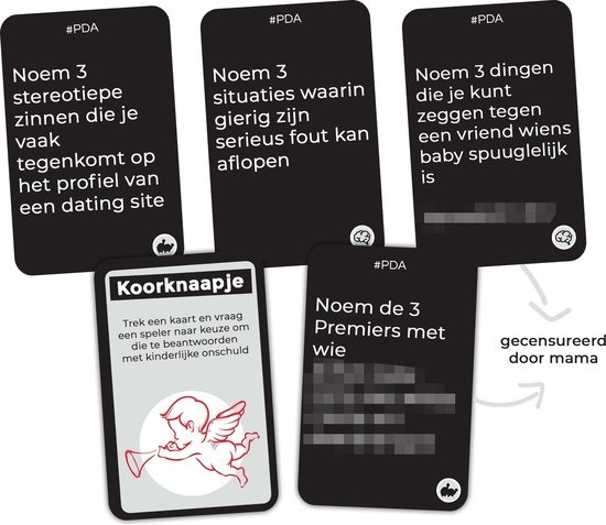 Onthul in 8 seconden de zieke gedachten van je vrienden of familie met de doldwaze vragen van PDA - Please Don't Ask. In dit leuke partyspel zorgen de gekke vragen op de kaarten voor de leukste antwoorden: spontaan & zonder filter. Als de tijd om is, komt de waarheid altijd uit! Please Don't Ask zal leiden tot doldwaze gesprekken en inside jokes die nog lang mee zullen gaan in je vriendengroep.