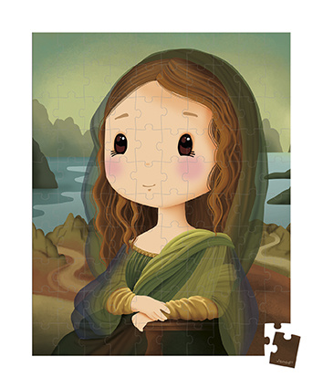 Prachtige puzzel geïnspireerd door de kunstwerken van da Vinci. Maak deze puzzel bestaande uit 100 stukjes en ontdek een liefevolle Mona Lisa in de schilderstijl van Leonardo da Vinci. Het maken van een puzzel is perfect om het geheugen en de behendigheid te ontwikkelen. De puzzel is verpakt in een mooie kartonnen koffer met stoffen handvat. Ingesloten zit een poster die als model dient voor de jonge puzzelaars.
