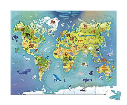 Ontluikende ontdekkingsreizigers en jonge aardrijkskundeliefhebbers vanaf 6 jaar zullen verrukt zijn. Deze prachtige puzzel is zeer gedetailleerd geïllustreerd en helpt je kind zijn geheugen en behendigheid te ontwikkelen. Met het grote aantal stukjes is dit een puzzel die grote uitdagingen en lange momenten van plezier belooft! De puzzel wordt geleverd met een poster die als leidraad dient voor het kind wanneer hij voor het eerst wordt gemaakt. Heel praktisch, de puzzel wordt opgeborgen in zijn mooie koffer met handvat om hem gemakkelijk op te bergen en te vervoeren!