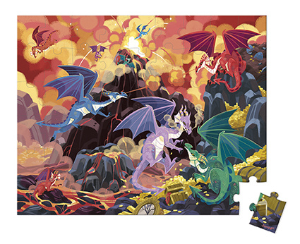 De vulkaan barst uit en de draken komen tevoorschijn: zullen ze wegvliegen of vechten om hun schatten te beschermen? Ga op een fantastisch avontuur met deze 54-delige kartonnen puzzel met als thema draken! Een leuke manier voor kinderen vanaf 5 jaar om hun geheugen en behendigheid te ontwikkelen. Geleverd in een draagtas met handvat is de puzzel gemakkelijk op te bergen en te vervoeren! Er wordt een modelposter meegeleverd om kinderen te helpen de puzzel af te maken.