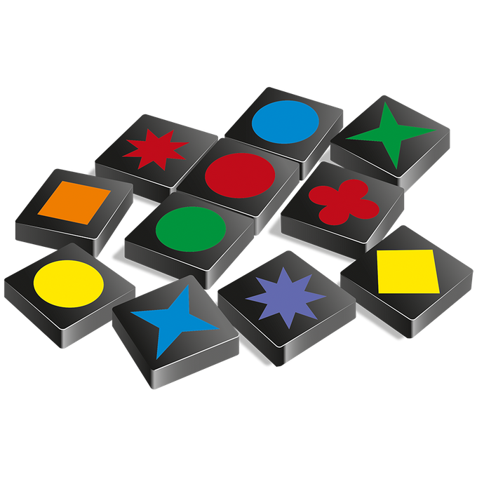 Combineer en scoor. Abstract spel dat al veel prijzen gewonnen heeft. Vorm rijen van gelijke kleuren of symbolen. De zesde in een rij leggen, de zogenaamde Qwirkle, levert 6 bonuspunten op!