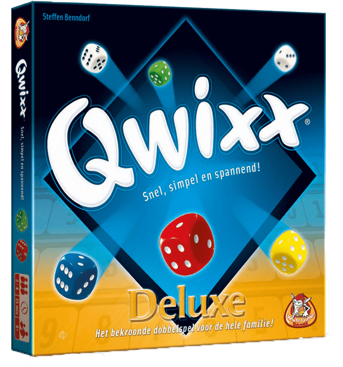 Luxe versie van Qwixx met uitwisbare borden. Probeer zoveel mogelijk getallen aan te kruisen in de vier gekleurde rijen op je kaart. De speler met de meeste punten aan het einde van het spel is de winnaar.