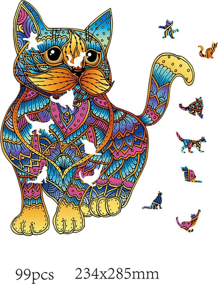 De Eureka 2D Rainbowooden Houten Legpuzzel Kat is een uitdagende puzzel voor puzzelliefhebbers van alle leeftijden. Met 99 stukjes biedt deze puzzel voldoende uitdaging om je urenlang bezig te houden.