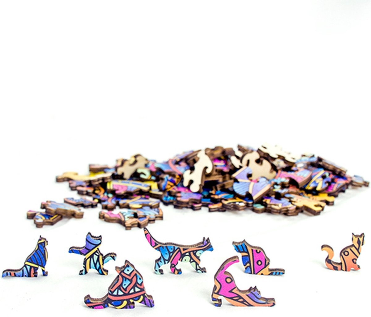 De Eureka 2D Rainbowooden Houten Legpuzzel Kat is perfect voor een ontspannen avondje thuis, maar kan ook meegenomen worden op vakantie of naar een puzzelavond met vrienden. Geniet van de uitdaging en het plezier van het leggen van deze prachtige puzzel!