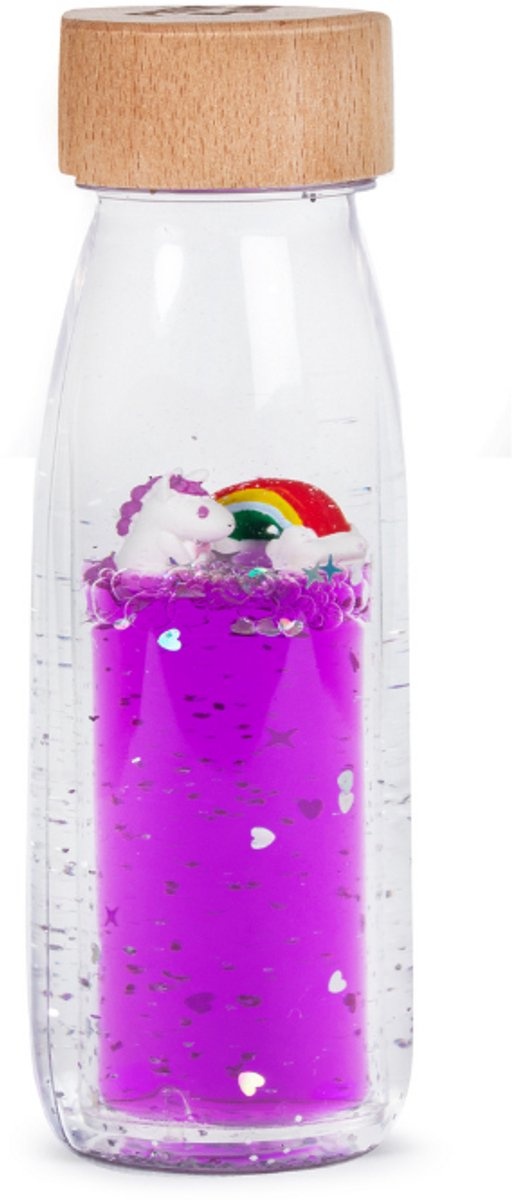 Deze sensorische fles pets van Petit Boum komt uit een hele collectie sensorische flessen die de concentratie bij kinderen bevorderen, het gehoor de zintuigelijke ontwikkeling en nieuwsgierigheid stimuleren. Ze zijn geïnspireerd op het prachtige kleurenpalet van de natuur en laat kinderen zich verwonderen over het spel van kleur, geluid en licht.
