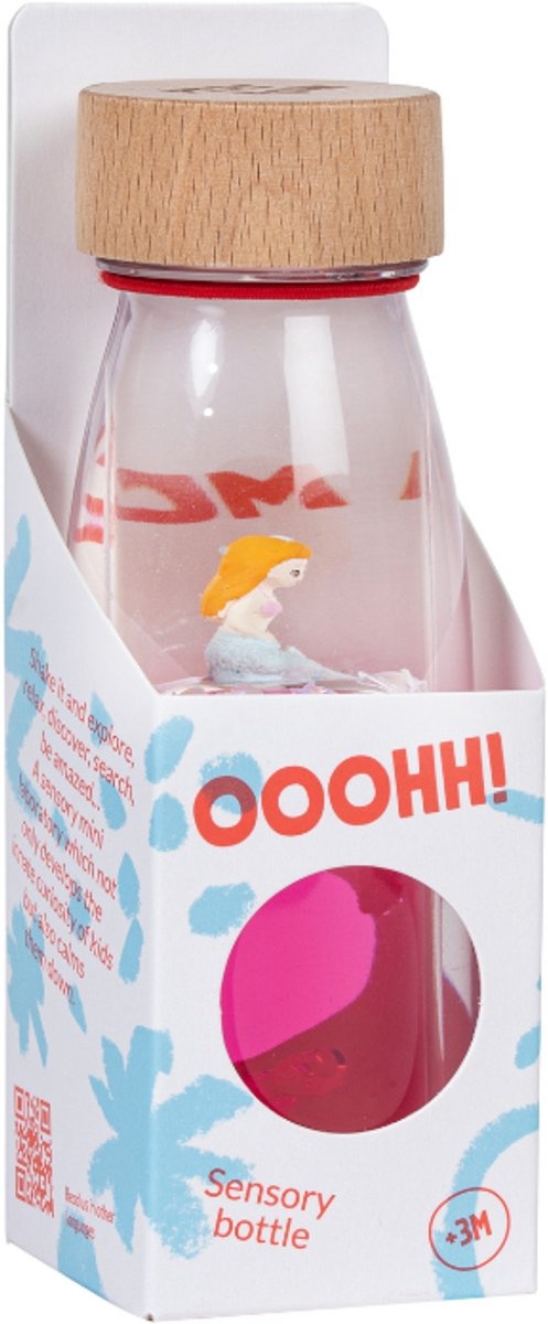 Zo komen in deze sensorische fles licht, kleur, geluid en magie samen. Het laten heen en weer bewegen van de fles en het volgen van de elementen zoals visjes, lieveheersbeestjes, zeemeerminnen, dieren, maïskorrels, bloemen, pailletten en korrels die in deze sensorische flessen verwerkt zijn, is de ideale manier voor kinderen om de de wereld te ontdekken door middel van zintuigelijke ervaringen; maar ook om te ontspannen.