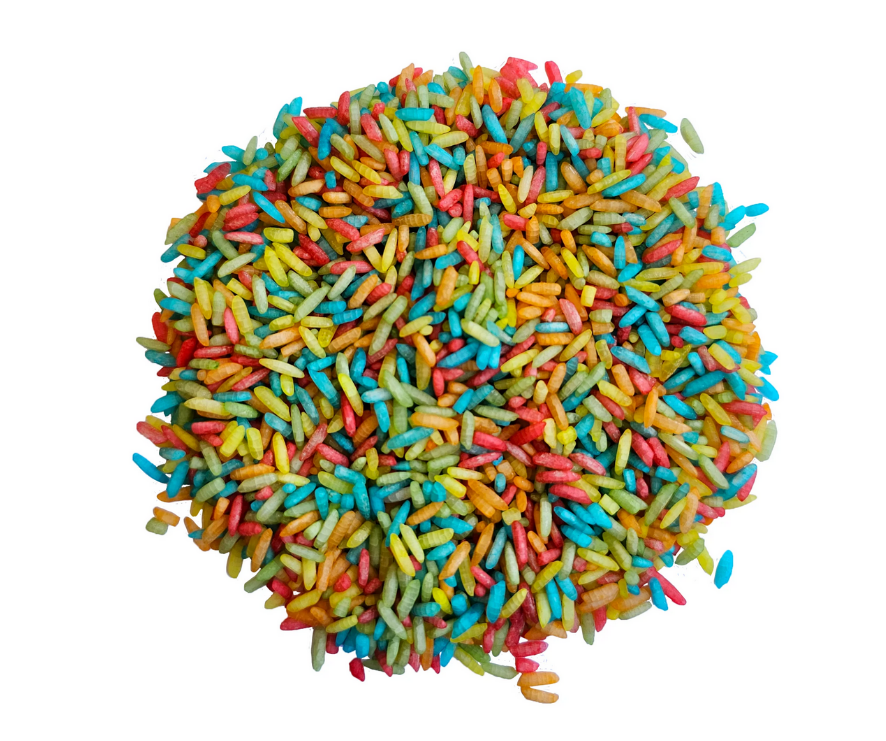 BeschrijvingSpeelrijst regenboog mix 750 gram
