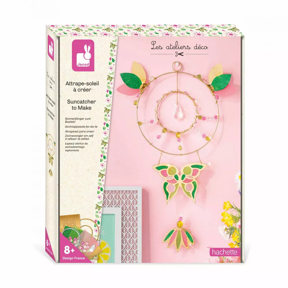 De dromenvanger ken je zeker, maar ken je de zonnevanger? De glanzende elementen laten de zonnestralen weerkaatsen en verspreiden een prachtig licht en heldere plekken in de kamer waarin het zich bevindt. Met deze decoratieSet kun je een zonnevanger maken door de stappen in het meegeleverde instructieboekje te volgen. De doos bevat 2 gouden cirkels van verschillende grootte, gouden draad en transparant nylon, een gouden ketting, een ophangring en gouden mini-haakjes, 39 facetkralen, een kwastje, 2 vellen roze calqueerpapier en donkergroen, glitterpapier en goud metaal, evenals een voorgesneden kaart. Met al deze elementen kunnen kinderen vanaf 8 jaar een prachtige decoratie maken om te houden of te geven. Deze activiteit ontwikkelt fijne motoriek en concentratie.